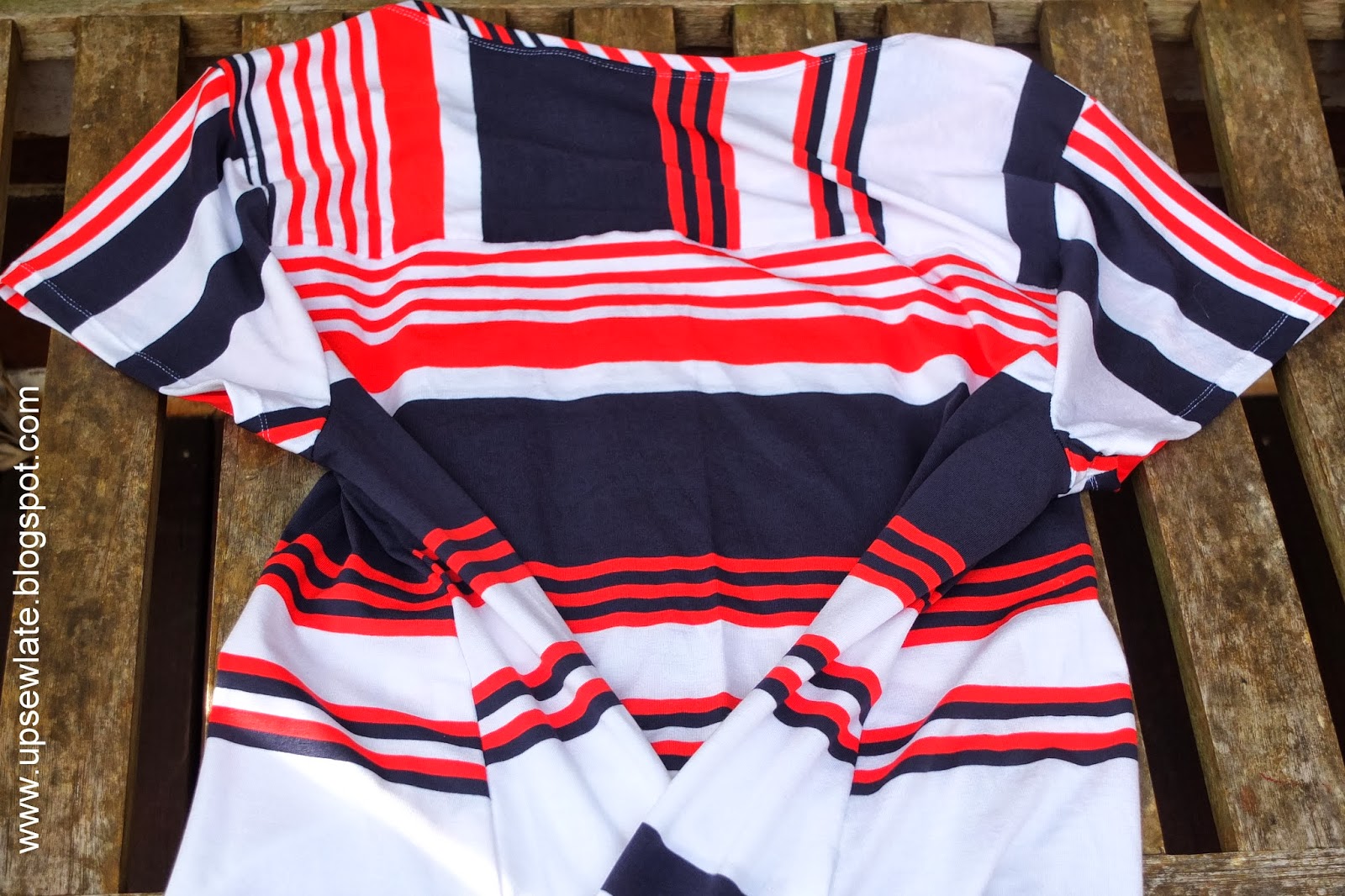A stretch cotton sateen from Lincraft. The pattern is recommended for moderate stretch fabrics. I bought this fabric because I was putting off sewing something more challenging with a more expensive fabric - oops, add that to the list of crazy justifications for fabric shopping! You only need about 1.5 metres of 150cm wide fabric for this dress unless you have a pattern to match up (I used 2 metres with some pattern matching, but I also made facings and lengthened the dress). Oh, and obvious diagonals are not recommended.